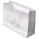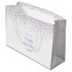 Faites part de votre appréciation à vos mariages grâce à ce sac cadeau mariage pour femme d'honneur. Parfait pour remplir avec un cadeau spécial pour montrer votre appréciation. Sac de faveur graphique à points cassants. Design mariage moderne et tendance partie du quartz rose et de la sérénité bleue confetti mariage set. Jolies teintes pastel bleu et rose sur un blanc arrière - plan. Customisez / personnalisez ces grands sacs cadeaux de faveur avec votre nom d'accompagnateur. Uniquement dessiné et dessiné par Sarah Trett.