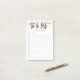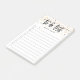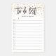 Chic personalized post-it note pad in crisp black and white features "to do list" at the top in handwritten style brush lettered typography, with a top border of gold, blush rose, and black confetti dots. Personalize with your name or choice of text beneath, or leave blank if desired. 11 lines with checkboxes help you keep track of all your important tasks!