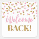 Bienvenue autocollants de retour avec l'or et le motif de confetti rose.