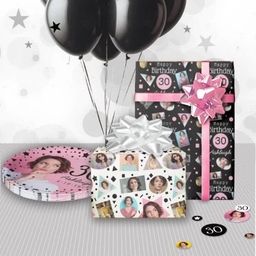 Pink Black White Confetti Photos 30th BirthdayDesigned by Mindy Pierce