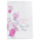 Show your appreciation to your flower girls or other wedding attendants with this thank you wedding favour gift bag. Perfect to fill with a large special gift to show your appreciation. Fashionable modern pastel shades of pink, purple plum with classic navy blue. Matches keepsake wedding bags and cards. Customize / personalize these gift favour bags with your attendants title, name and a personal message or thanks. Currently reads Thank you Flower Girl Tanya. Uniquely designed by Sarah Trett.
