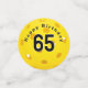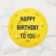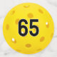 Gros plan d'un pickleball jaune pour un 65e anniversaire. Tout le texte peut être modifié ou supprimé.