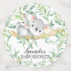 Design baby shower mignon avec un bébé Koala doux avec maman encadré de feuilles d'aquarelle verte naturelle. Retournez notre design pour voir une feuille verte assortie pour une touche spéciale supplémentaire.