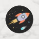 Ce confetti de table douce est orné d'un astronaute, d'un navire-fusée et de planètes colorées.
