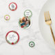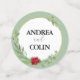 Thème Fêtes de Noël mariage de la table confetti design comprend votre photo préférée, la date mariage, les noms de mariée et mariée, monogramme nuptiale, ornement coeur rouge aquarelle, et un mariage de vacances amusant disant, le tout enveloppé dans la verdure des vacances aquarelle. #NoelMariage #MariageFêtes #Mariage