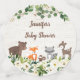 Ce design présente nos adorables petits animaux en bois dans un style aquarelle avec des accents floraux verts et blancs.