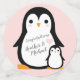 Célébrez les nouveaux parents et Baby avec ce baby shower de pingouin mignon design! Le doux rose arrière - plan et mignon oiseau de pingouin de dessin animé en fait un design parfait pour une petite fille en chemin, surtout pour une douche d'hiver!