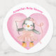 Table blanche rose Confetti pour Baby shower avec pingouin girly mignon sur coeur rose | Utilisez cette option modèle pour modifier le texte | Cliquez sur CLIQUER POUR CUSTOMISER PLUS d'option pour modifier le style et la couleur du texte.