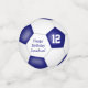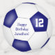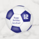 Ce confetti sportif d'anniversaire de football présente un graphisme stylisé de ballon de football, avec les panneaux noires typiquement du ballon de football recolorés bleu, sur le devant et l'arrière de chaque pièce de confetti, sur lequel vous pouvez customiser votre texte - par katz_d_zynes