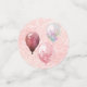 "Balloons Parties scintillant roses Eucalyptus Baby Girl Douche Confetti pour Décor de fête." Panneaux de clôture en bois de cottage peints à la main, avec un panneau en bois rose poussiéreux et cinq ballons irisés et décorés de parties scintillant avec des lumières scintillantes accrochés aux eucalyptus boisés pour un cadre rustique et décontracté pour votre baby shower ! Art par Audrey Jeanne Roberts, artiste titulaire d'une licence internationale, copyright.