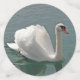 Joli cygne blanc nageant dans l'eau grise.