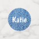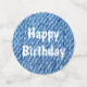 Matériau en jean denim bleu. Personnalisez avec le nom et la célébration de votre choix.
