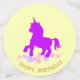 Belle table confetti avec une licorne Joyeuse Anniversaire sur des arrière - plans jaunes et ultra violets. Texte "Joyeux Anniversaire" peut être personnalisé. Idéal pour des anniversaires magiques, des douches et autres fêtes de fête! ! !