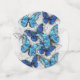 Vertical composition of réalistes, blue and white morpho butterflies on gray textured background. Morphine bleu.