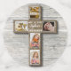 Illustration de la Première Sainte Communion moderne avec croix en bois avec des images de communion épinglée sur un arrière - plan rustique. Il est facile de modifier les 3 échantillons de photos du communicant avec vos propres photos pour personnaliser le produit.