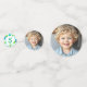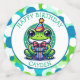 Joli confetti pour l'anniversaire d'un petit garçon. Une adorable grenouille dans un casquette d'anniversaire tenant un cadeau avec un mignon arrière - plan pois en bleu et vert. Modifiez le texte dans la zone de personnalisation. Saupoudrer autour de la table cadeau ou de la table dessert.