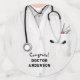 Décoration de fête de soins de santé créative pour la célébration de la remise de diplôme de médecin ou d'études de médecine avec une blouse de laboratoire et un stéthoscope. Pour personnaliser, modifiez le texte pour ajouter le nom du médecin.