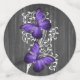 Décorez les tables de votre mariage ou de votre shower de mariage avec des Confettis de table pour shower de mariage papillon rustique violet. Le design des confettis présente une paire de papillons vibrants sur une vigne feuillue blanche et un fond en bois rustique.
