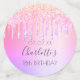 Fille et confetti féminin pour votre 18ème anniversaire table de fête. Un arrière - plan en violet et rose. Décoré avec des gouttes de parties scintillant de couleur arc-en-ciel violet, rose. Personnalisez et ajoutez une date et un nom/âge 18. Lettres de couleur grise. Quelques jetons de confetti avec nom et date, d'autres avec le texte : Joyeux Anniversaire écrit avec un script à la mode manuscrit avec des swashes. Ajoutez votre propre photo sur deux des puces.