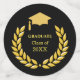 Confetti à look métallique or et capuchon de graduation avec laurier doré sur table noire Confetti. Le texte peut être personnalisé. Idéal pour les diplômes ! Brille comme un morceau d'or brillant ! !