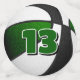 L'avant et l'arrière de chaque pièce de ce confetti d'anniversaire de basket-ball présente l'image réaliste d'un basket-ball qui a alternativement des panneaux verts, blancs et noirs - personnalisez l'avant du grand confetti avec l'âge ou le numéro de maillot d'un enfant, ou supprimez - par katz_d_zynes
