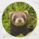 Table confetti avec une adorable photo représentant un petit furet brun debout dans une longue herbe. Aussi mignon que possible !