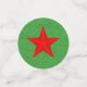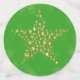 Ce confetti de table a de grands cercles avec une grande étoile dorée faite de multiples petites étoiles dorées sur un arrière - plan vert foncé avec des écailles d'or. Les cercles moyens sont vert foncé avec de l'or Joyeux texte de Noël et des éclats d'or. Les petits cercles sont vert foncé avec des éclats d'or et une étoile rouge vibrante.