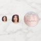 Fille et confetti féminin pour votre 21e anniversaire (ou tout autre âge) table de fête. Un rose d'or faux métallique, à l'aspect feuille arrière - plan décoré avec de faux rose or et parties scintillant argent gouttes. Personnalisez et ajoutez une date et un nom/âge 21. Lettres de couleur or rose foncé. Quelques jetons de confetti avec nom et date, d'autres avec le texte : Joyeux Anniversaire écrit avec un script à la mode manuscrit avec des swashes. Ajoutez votre propre photo sur deux des puces.