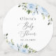 Ajoutez une touche personnelle à votre fête de baby shower avec ces objets de fête élégants et mémorables ! Le design présente des fleurs d'aquarelle bleu poussiéreux et de la verdure sur l'arrière - plan blanc.