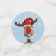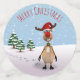 Illustration de Noël mignonne et drôle : Un renne portant le casquette du Père Noël avec des pas dans la neige.