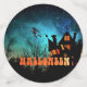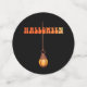Une invitation éffrayante à Halloween avec une maison sombre et une sorcière sur un balai. Modifiez les informations de votre propre table personnelle personnalisée confetti. Foncé et orange pour créer une ambiance éffrayante.