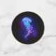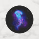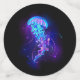 Grande méduse bleue, artistiquement dessinée, brillante, brillante, avec de longues tentacules sur arrière - plan noir avec bioluminescence violette. Méduse brillante.