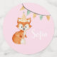 Terminez la fête d'anniversaire de votre enfant avec ces décorations de fête d'enfants avec une illustration pastel montrant un mignon renard portant un casquette de fête sur un arrière - plan rose pour un thème boisé.