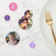 Photo personnalisée confetti. Anime fille avec de longs cheveux bruns, des fleurs dans ses cheveux, un cupcake rose et chocolat tasses de papier d'anniversaire fille.