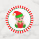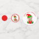 Jolies elfes de Noël sur table rouge et blanche Confetti. Le texte sur les grands confettis peut être personnalisé.