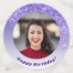 Chic Falling Parties scintillant violette avec dégradé violet, étoiles brillantes et photo. Idéal pour un 60ème anniversaire amusant.