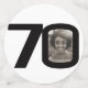 70e anniversaire noir et blanc bande graphique et confetti de partie de texte. Idéal pour ajouter une touche personnelle à une fête d'anniversaire surprise. Personnalisez avec trois de vos photos d'anniversaire garçons ou filles dans le 0 sur 70 et personnalisez avec votre choix de nom. Conception par Sarah Trett pour www.mylittleeden.com