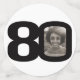 80e anniversaire noir et blanc bande graphique et confetti de partie de texte. Idéal pour ajouter une touche personnelle à une fête d'anniversaire surprise. Personnalisez avec trois de vos photos d'anniversaire garçons ou filles dans le 0 sur 80 et personnalisez avec votre choix de nom. Conception par Sarah Trett pour www.mylittleeden.com