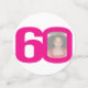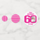 60e anniversaire rose vif et blanc rayures graphiques et confetti de partie de texte. Idéal pour ajouter une touche personnelle à une fête d'anniversaire surprise. Personnalisez avec trois de vos photos d'anniversaire garçons ou filles dans le 0 de 60 et personnalisez avec votre choix de nom. Conception par Sarah Trett pour www.mylittleeden.com