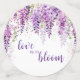 De magnifiques fleurs d'aquarelle violette de wisteria pendent du haut de ce confetti de lancement de mariage pour célébrer "l'amour est en fleur". Parfait pour la table lors d'un lancement de mariage printanier, violet ou floral, mariage ou fête de couple. Ce confetti de table peut également être personnalisé pour une fête d'anniversaire ou autre célébration florale printanière. Disponible avec des produits assortis.