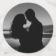 Un design de mariage ou de fiançailles simple avec le nom de la mariée et du marié, des cœurs pailletés dorés et une photo en noir et blanc de votre choix.