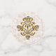 Un charmant confetti mariage pastel aux motifs floraux pastel, doux et rêveur, rose pâle et vert, avec un bijou doré sur le devant avec de minuscules émeraudes. Sur le dos est un monogramme personnalisé de la Mariée et de la Salle. Ce confetti apportera une touche chic et élégante à vos tables de réception de mariage après la cérémonie.