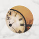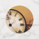 Un décor chaleureux de couleur orange et marron donne le ton de ce design mariage de steampunk, avec une horloge vintage, des engrenages et des lignes marron. Au centre, un couple victorien vêtu de sa plus belle tenue steampunk