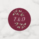 Elégante verdure fleurie burgundy mariage table confetti personnalisée avec des noms de style signature, initiales monogrammes, date et message mariage spécial. Conçu par Thisisnotme©