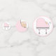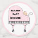 Baby shower créatif à thème piano avec piano à queue rose en forme de poussette et bébé fille douce. Pour personnaliser le texte de modification.