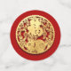 Papier doré coupé d'un lapin en cercle + nuages Auspicious chinois dorés (graphique en ligne). Conception sur table confetti avec arrière - plan rouge et textes : 2023, L'Année du lapin. Carte de voeux, carte postale de vacances, invitation, artisanat, fournitures de fête et plus encore... Parfait pour le Nouvel An Chinois du Lapin 2023 ou anniversaire (personnes nées dans l'Année du Lapin).