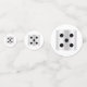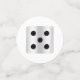 Le visage d'un dés avec cinq taches noires sur un arrière - plan blanc