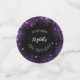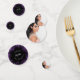 Un arrière - plan noir classique décoré d'une fausse parties scintillant couleur violet foncé, brille. Personnalisez et ajoutez la date, le nom, l'âge et une photo.