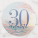 Plage à thème Anniversaire Plage Fête grande table Confetti Sprinkles Personnalisé avec n'importe quel âge et nom ou texte personnalisé avec pastel rose or, rose, turquoise, bleu, et pêche défraîchi photo de plage arrière - plan et moderne minima feuille de palmier rose avec un âge et nom en bleu marine. Modifier l'âge pour travailler pour toute petite fille, ado ou femme adulte fête d'anniversaire de plage tropicale.