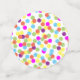 Conception de pois-pois colorés en magenta, orange, jaune, vert, bleu et violet des deux côtés des grands cercles et d'un côté du cercle moyen. L'autre côté du cercle moyen est bleu et le petit cercle est jaune d'un côté et vert de l'autre.